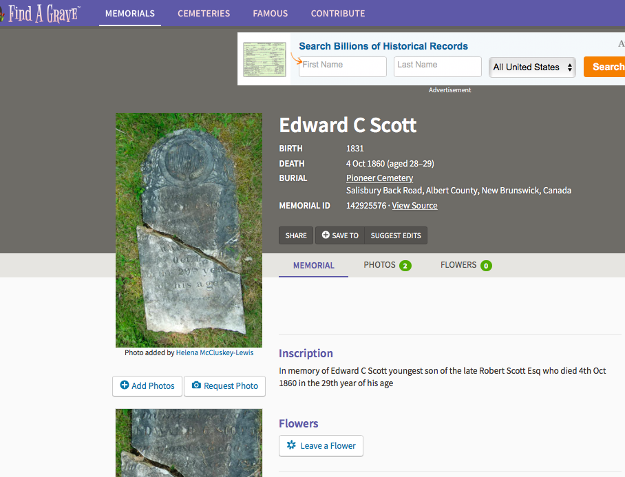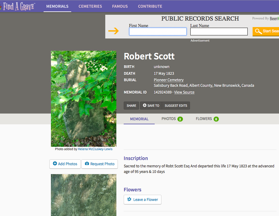 So maybe rank this information as a strong positive hypothesis versus a genealogical proof?? The good news is that New Brunswick has some local offline documents that may provide genealogical proof, and there are plenty of Scott cousins that may have family records from Lee Scott and his parents. Time to travel to New Brunswick! Time to meet Scott cousins!