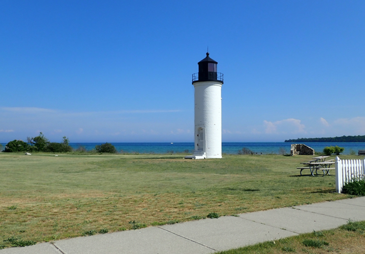 We left dock at 7:30 a.m. 6/8 and arrived at the marina at the north end of the island at about 3:00. Seas were rough for the second half of the trip. Biking around Beaver Island we took in the historical sights of the old town. The island’s totem citizen “Pierre Beaver” was nice enough to place several plaques along the main street that described the history of the Mormon settlement there in the mid-1800’s, as well as the location of the murder of the leader of the community, self-styled King of the Mormons on the island, James Strange. Biking to the other end of the island we admired one of many lighthouses that we would see on our journey.