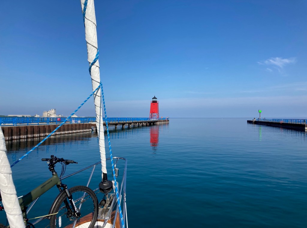 We left Mackinaw Island at 7:30 a.m. for Cheboygan and arrived there at 1:00. Our day two on Lake Huron was greeted with 20-knot winds on our nose, slowing our speed to 4 knots with lots of splashing.