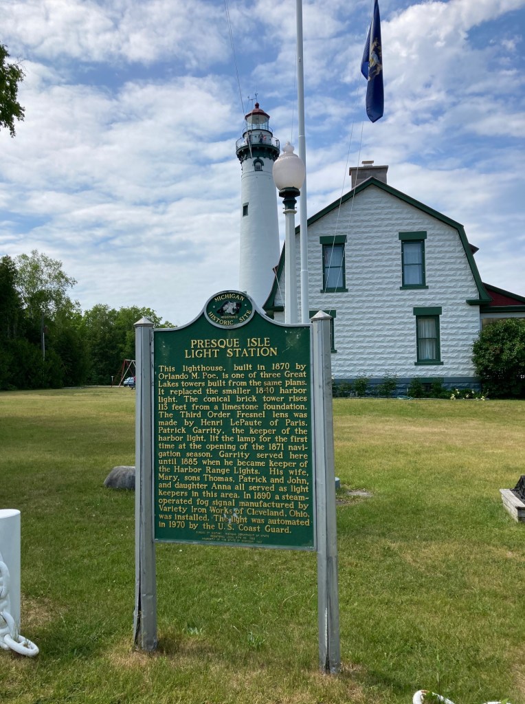 We arrived at Michigan’s Presque Isle State Park after a short 4 hours trip from Rogers City, smooth seas and an 8-knot wind. There are several shipwrecks in the area and placards in the park describe the location of each wreck and their various demises. Lake Huron was not any kinder than Lake Michigan to ships in the 1800’s and many met their doom on its waters.