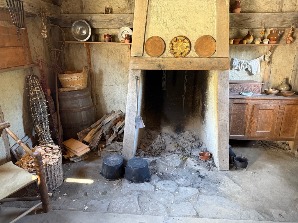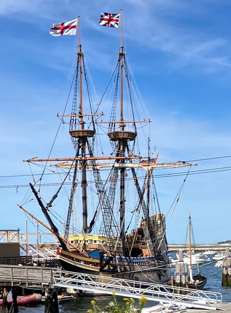 9/21/25 Sunday – We drove to Plymouth and visited the Plimoth Pawtuxet Museum. The museum is a complex of individual sites including an extensive living replica of the Pilgrim village complete with stockade, fort, and Pilgrim houses. The museum complex also includes a Wampanoag home site, and an exhibition hall showcasing early settler crafts and industries.